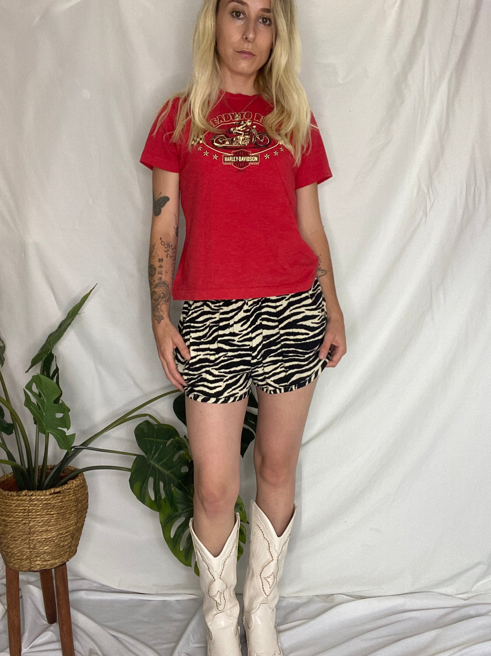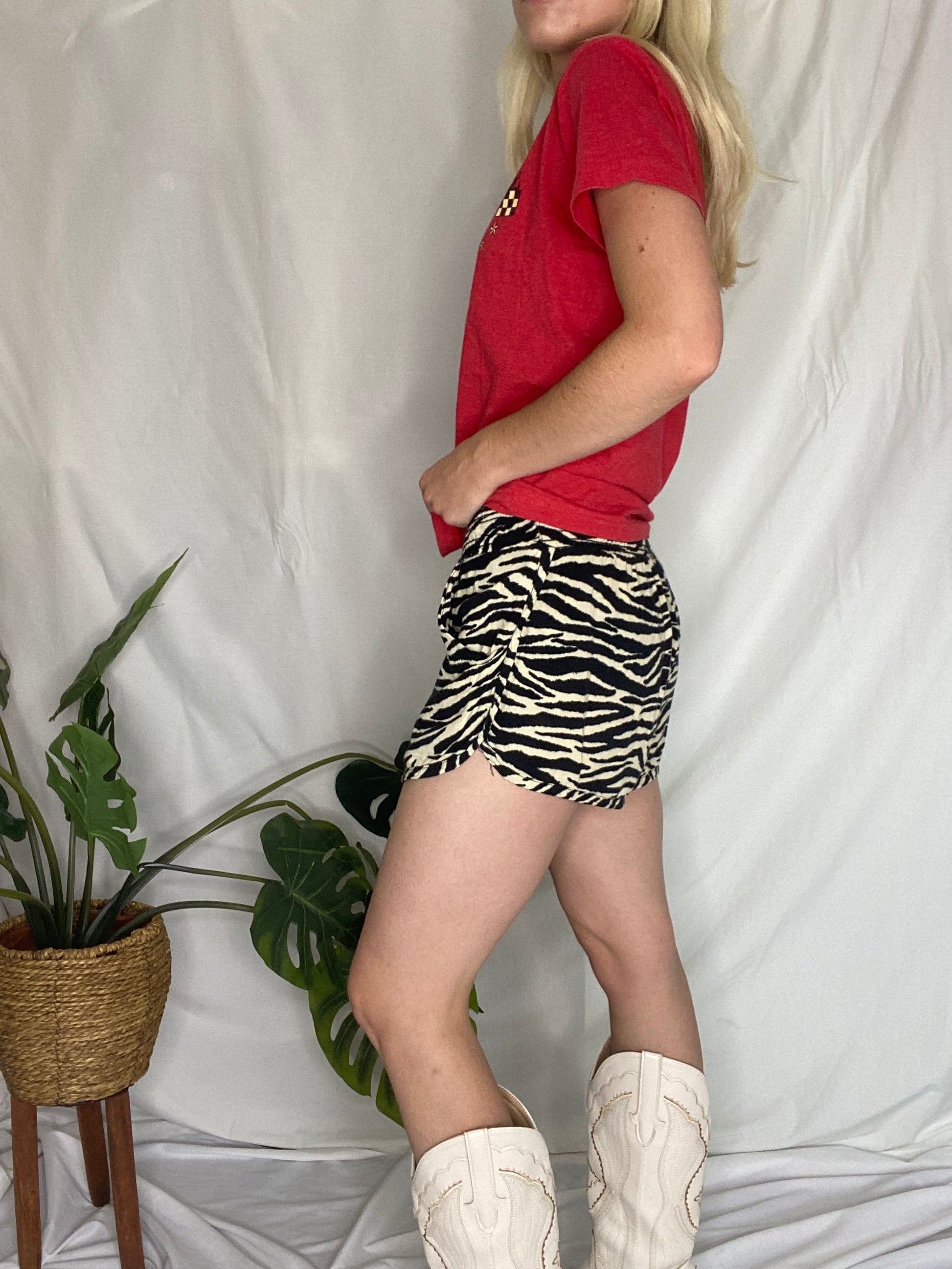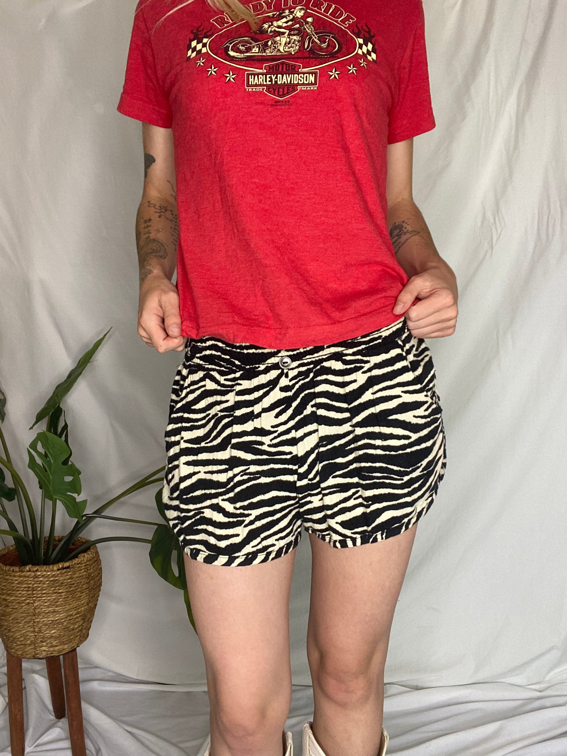 Black/cream Zebra print flowy mini shorts