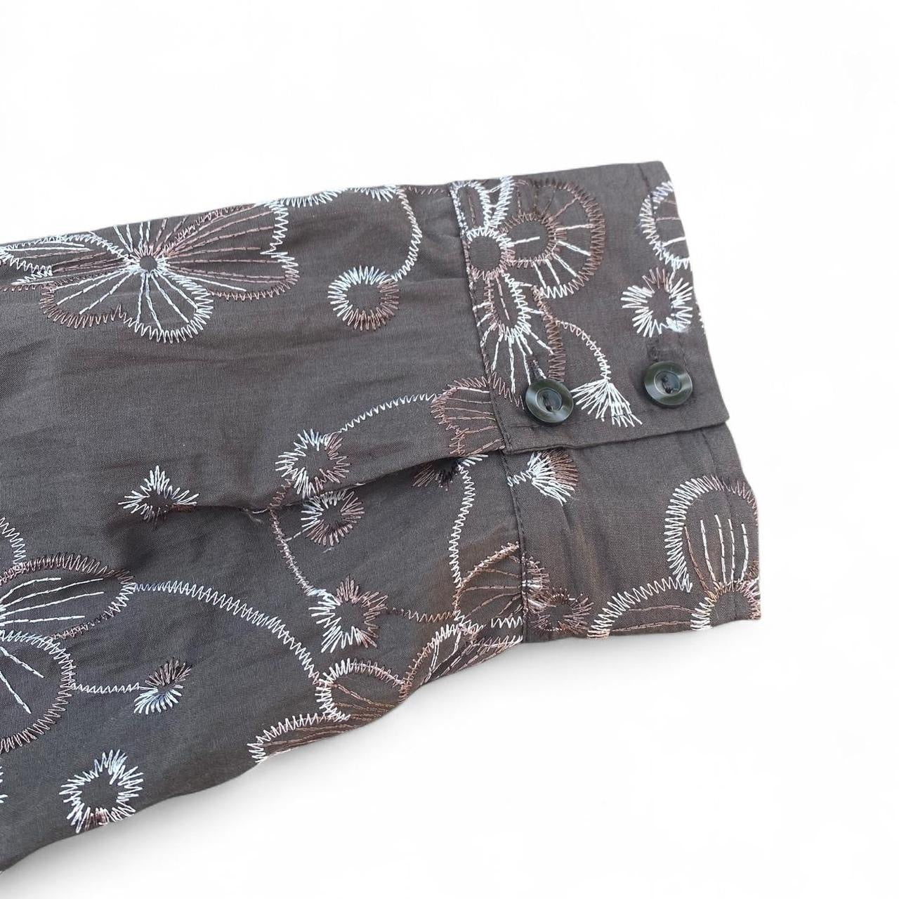 Brown/white embroidered floral button-up shirt