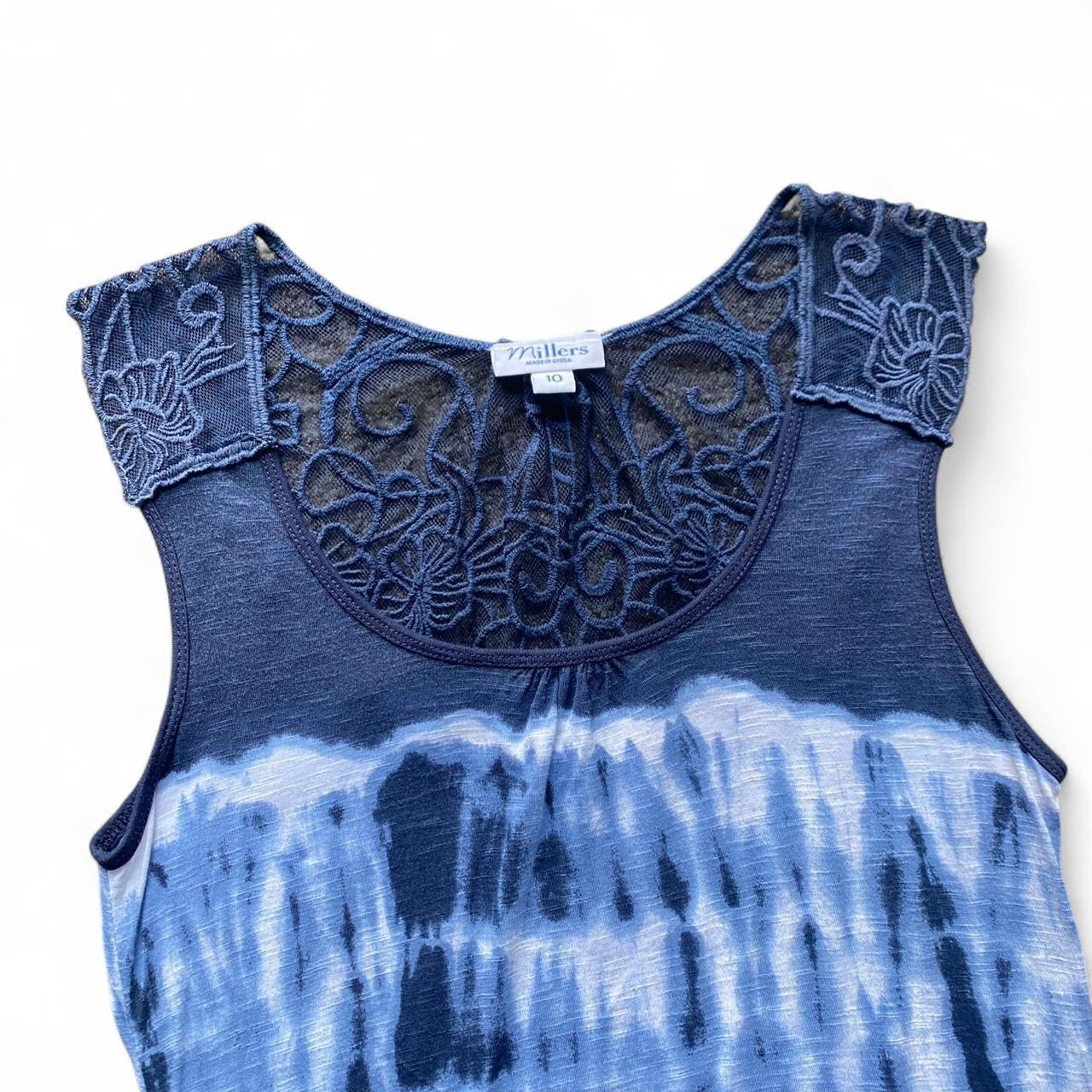 Cute blue two toned tie dye lace tank top