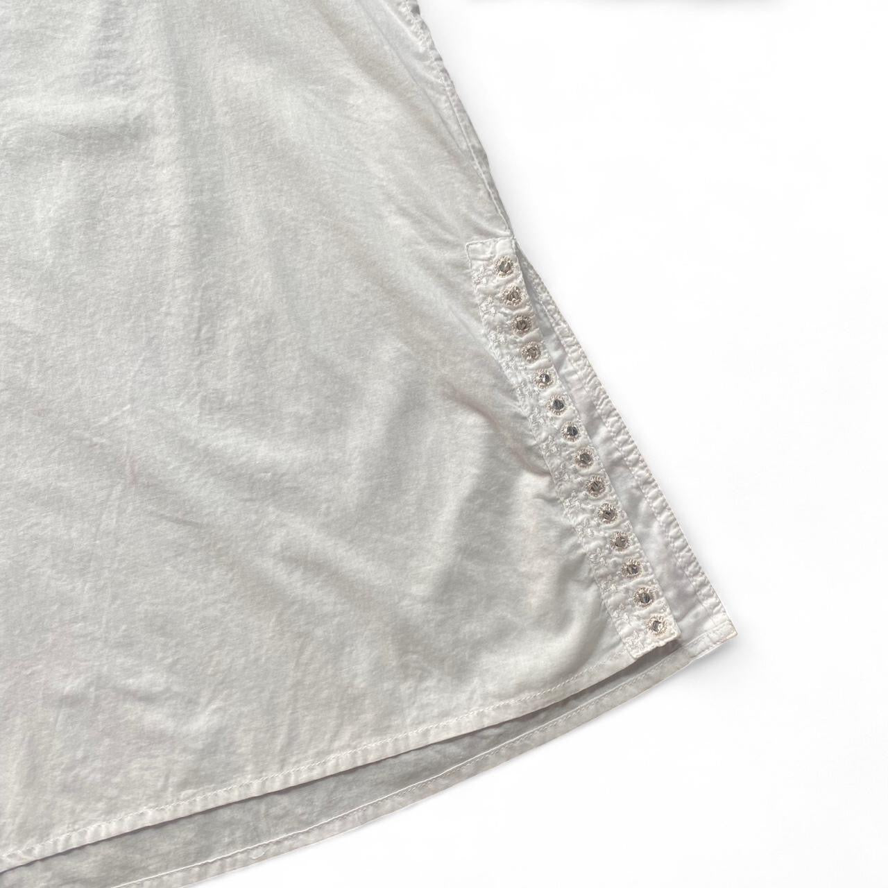 White beachy boho V neck long sleeve top